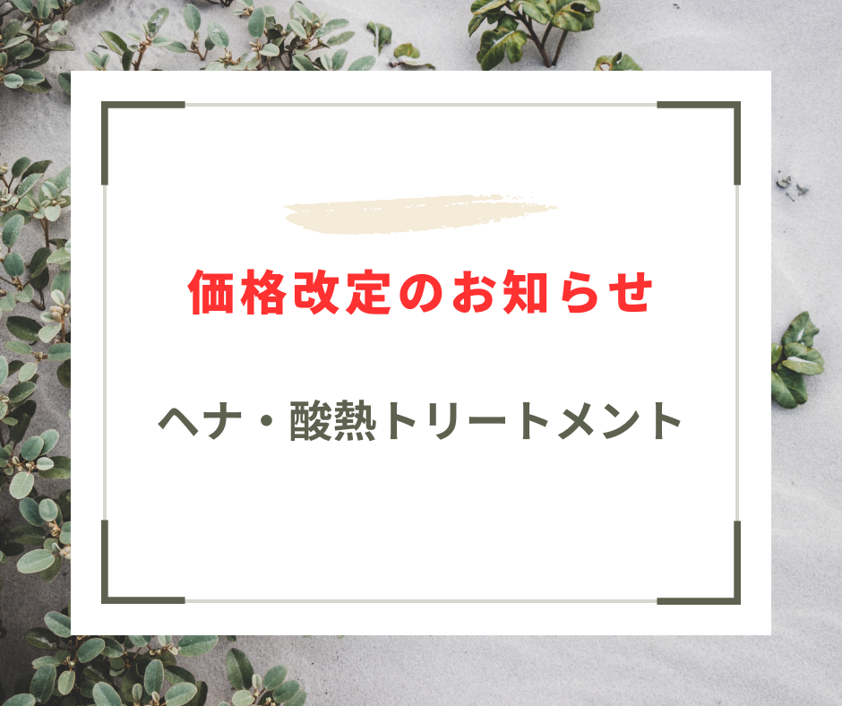 ヘナ・酸熱トリートメント価格改定のお知らせ